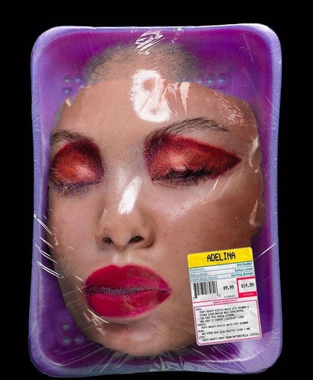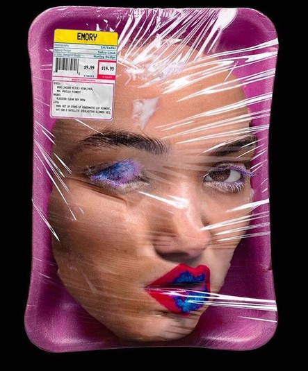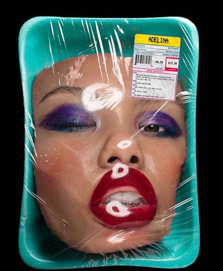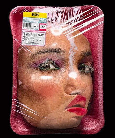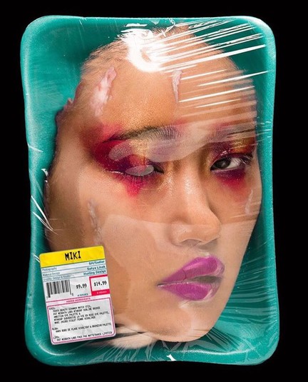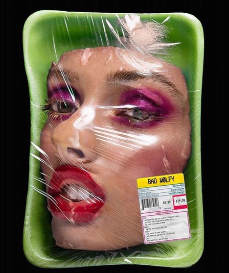 В последней съемке под названием Fresh Meat («Свежее мясо») приняли участие четыре модели. Их ярко накрашенные лица в целлофане и упаковки из-под мяса фотографировали отдельно.