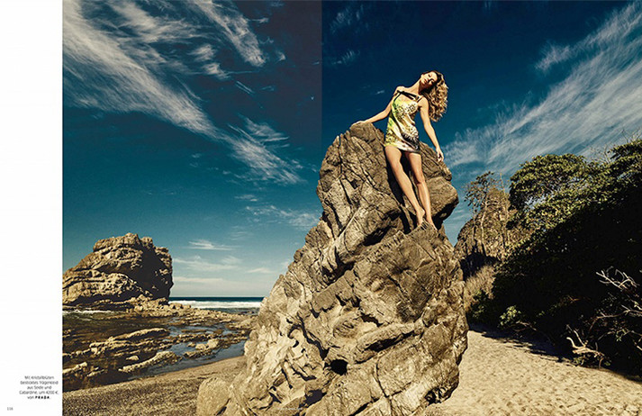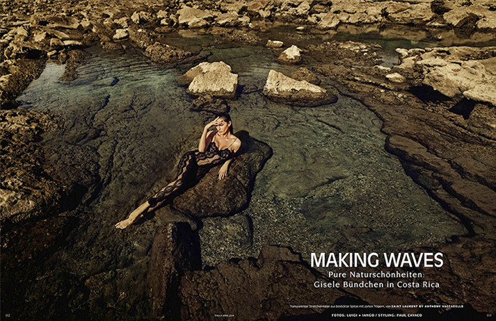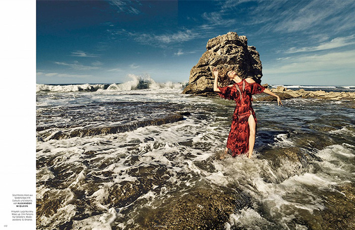 Модель примерила на себя образ морской сирены. Съемка под руководством талантливых фотографов Луиджи Мурену и Янго Хензи прошла на скалистом побережье Коста-Рики.