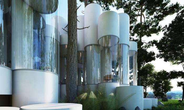 Такой нестандартный подход поднимает подобный вид архитектуры на новый уровень. По словам дизайнера этого проекта, цилиндры можно выстраивать в любой последовательности в зависимости от особенностей рельефа на строительном участке.