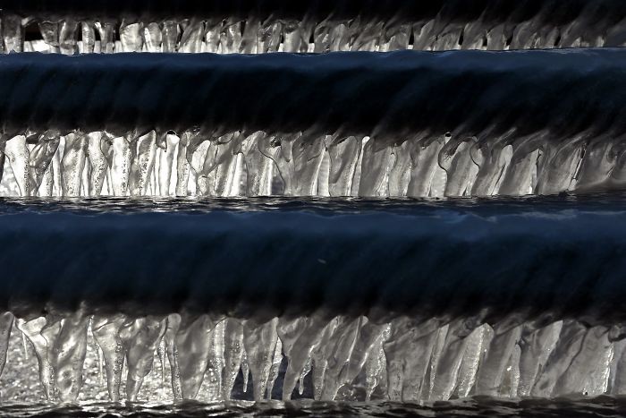 Сильный ветер и мороз превратили озеро в захватывающее зрелище.
