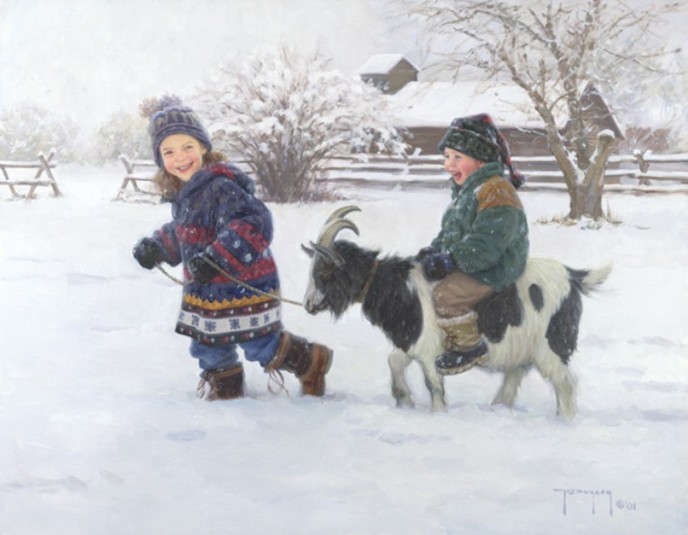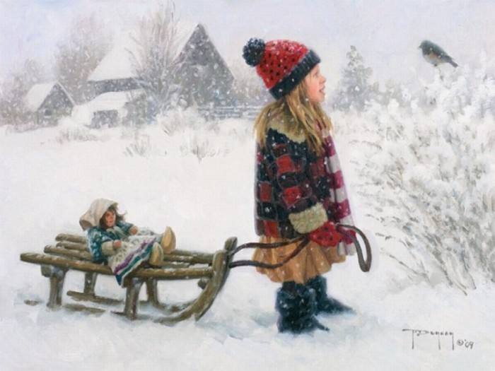 Пожалуй, это самое удивительное время года: за окном стоят морозы, белоснежные сугробы напоминают горы, а с улиц доносится звонкий детский смех, ведь детишкам всё нипочём. Убедиться в этом помогут замечательные картины Роберта Дункана (Robert Duncan), который большую часть своего творчества посвятил столь прекрасной поре года.