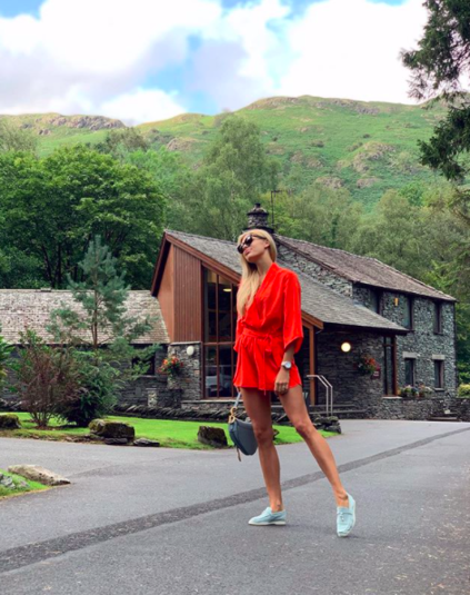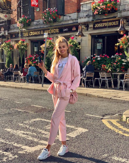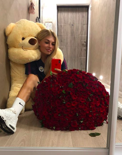 Влада Седан появилась на нем в эффектном красном костюме. Однако увидев это фото своей девушки в соцсети, Александр Зинченко тут же указал ей в комментариях: «Manchester is blue».