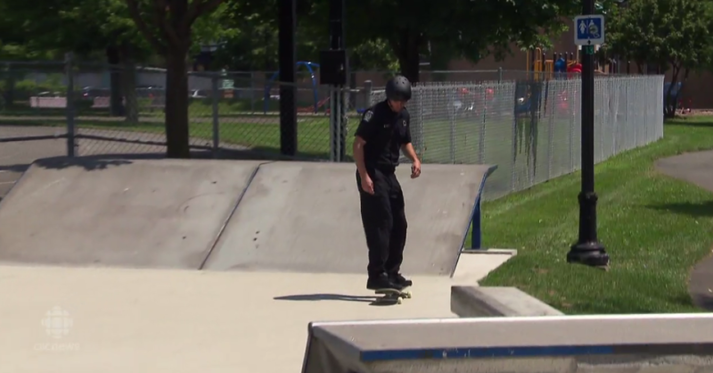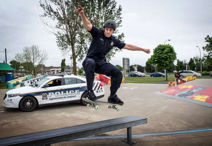 Когда Тьерри Хинсе-Файллион приехал в скейтпарк на окраине Монреаля в свой первый день на новой должности, его встретили удивленные взгляды. Некоторые, принимая во внимание его униформу и патрульную машину, подумали, что он приехал кого-то арестовать. Но Тьерри открыл багажник и вытащил скейтборд.