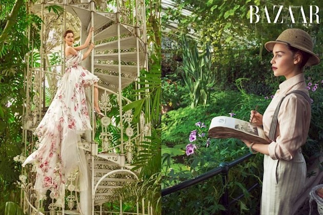 Снимки создавались в лондонском ботаническом саду Kew Gardens. В окружении цветущих растений актриса предстала в весенних нарядах Dolce&Gabbana, Giambattista Valli, Ralph Lauren, Valentino, Bottega Veneta и других известных брендов.