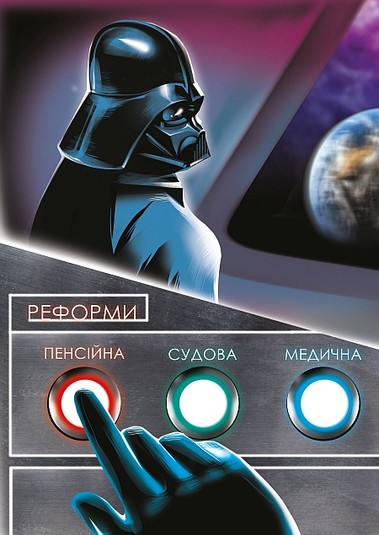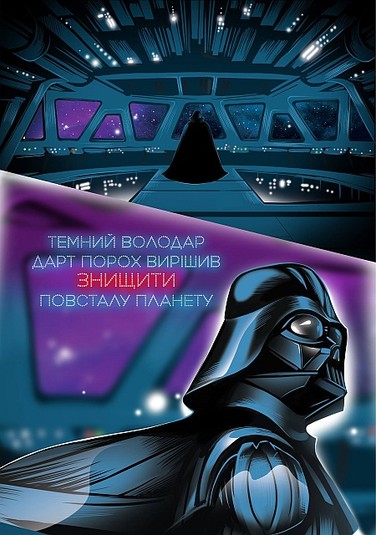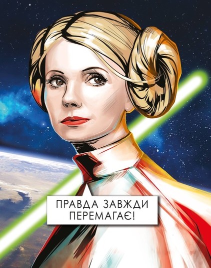 В частности, президент Петр Порошенко изображен в образе главного антагониста Дарта Вейдера. А нардеп Юлия Тимошенко нарисована, как принцесса Лея.