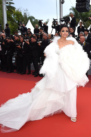 Самой эффектной девушкой на красной дорожке стала Айшвария Рай. Правда. наряд актриса выбрала не самый удачный — Айшвария буквально утонула в обилие белого тюля, складок ткани и перьев.