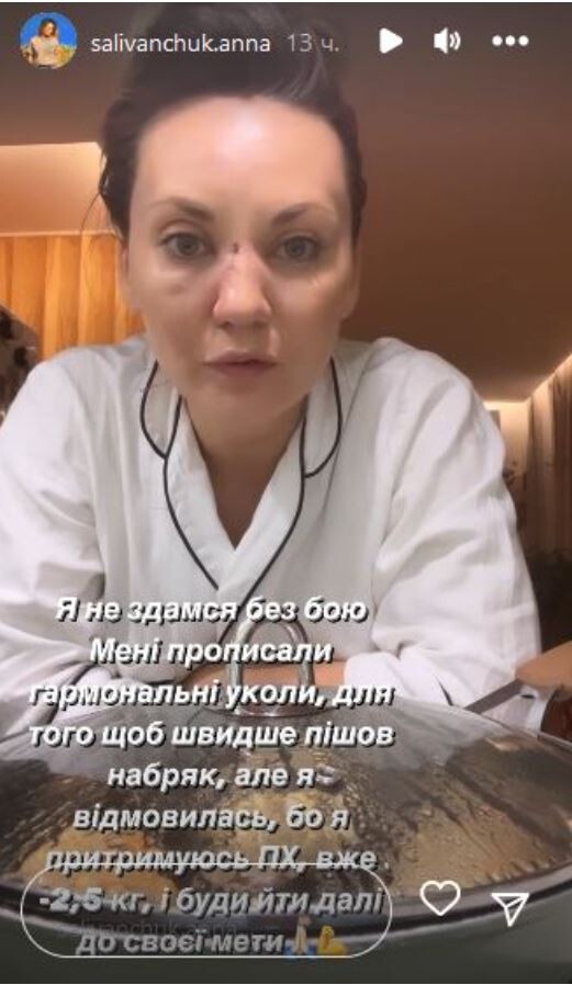 «Дуже багато хочеться вам розповісти, що я пережила в лікарні, які були лікарі, яке було відношення, – продовжила Саліванчук. – Чому під час повітряної тривоги не роблять КТ і рентгени, хоча ніхто не спускається в укриття. Через те, що мене впізнали – мені зробили. Тобто, якби я була не актриса, залишилася б без рентгена і КТ. Дуже шкода, що так. Дуже вдячна цій жінці».