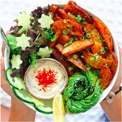 Вдохновение вы найдете в Instagram под тегом #buddhabowls, где показано бесконечно много способов употребления этой еды. Приготовить такое блюдо очень просто - достаточно взять цельнозерновые крупы с четырьмя или пятью видами овощей (сырых или печеных) и здоровую заправку, например, ореховый или соевый соус. В миску также стоит добавить авокадо который можно причудливо нарезать, например, в форме розы. Главное – экспериментировать!