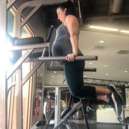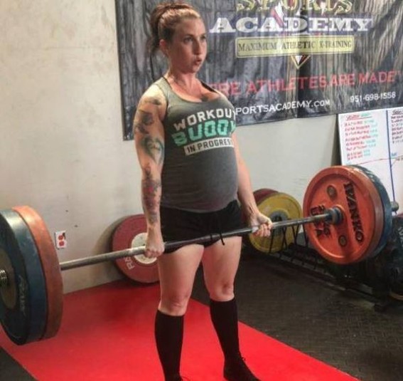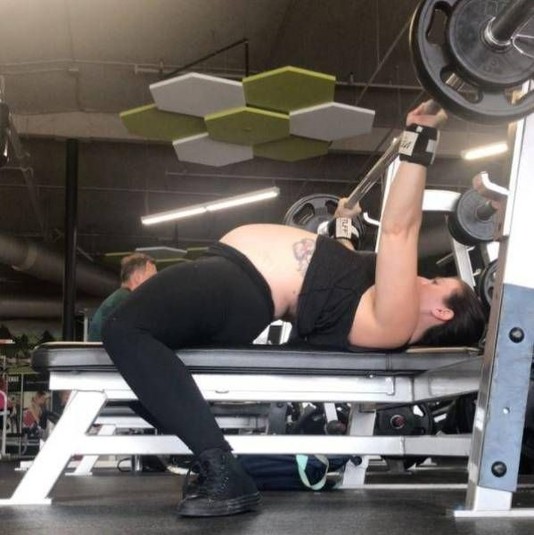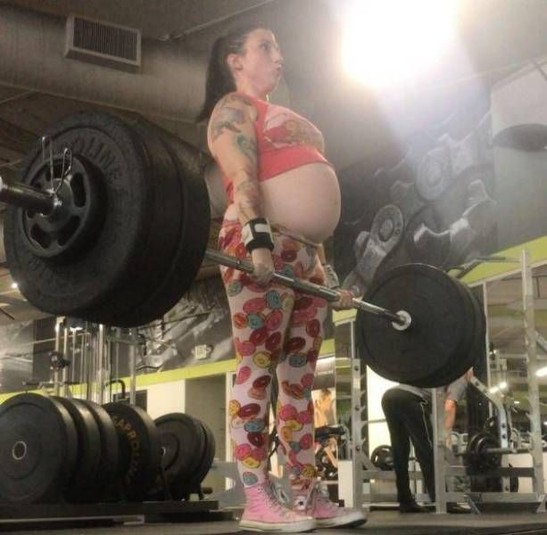 Пауэрлифтерша на восьмом месяце беременности поднимает штангу весом 125 кг