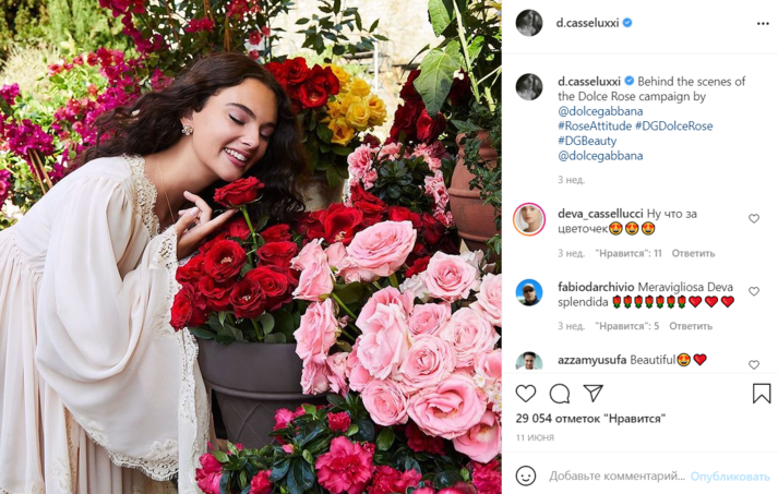 Поклонники осыпали начинающую фотомодель комплиментами. Деву сравнили с матерью. «Потрясающая», «Какая романтичная, само очарование», «Моника – богиня глянца, вырастила достойную замену! Того гляди – и в кино пойдет», «Гены прекрасные, вся в родителей», «Голливуд отдыхает! Красотка, в маму! Какая грация, стать, взгляд», «Невероятно красивая девушка! Будущая звезда подиумов, однозначно» — восхитились пользователи соцсетей.