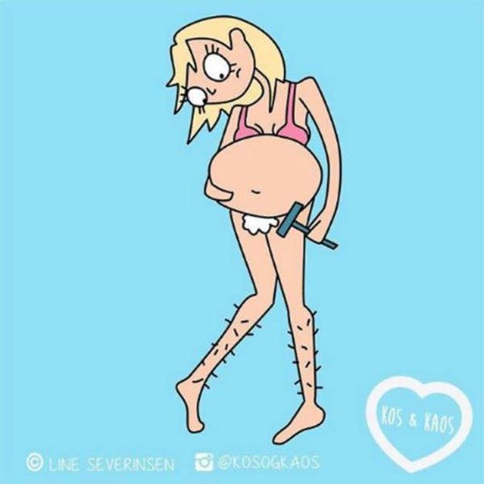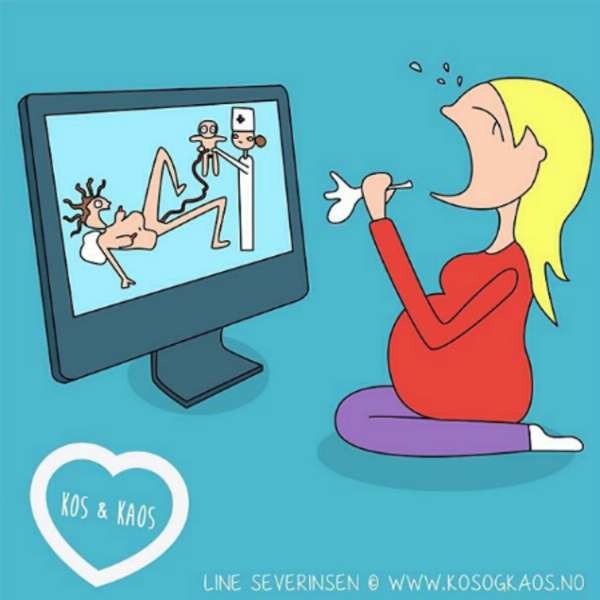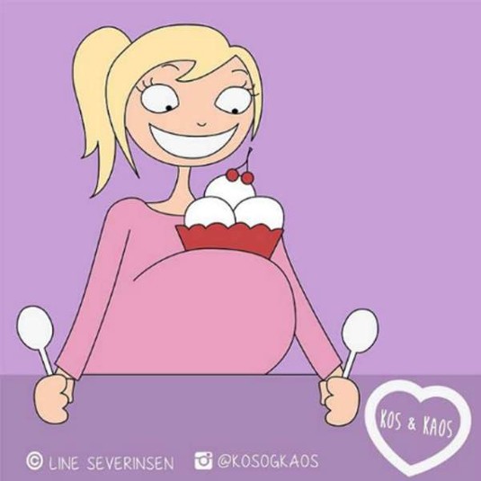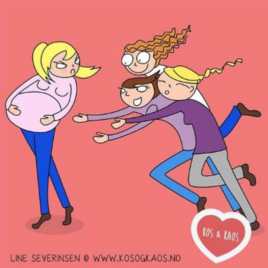 Лайн Северинсен, норвежская художница-иллюстратор, аниматор мультипликации и мать двоих детей создала серию забавную иллюстраций о беременных женщинах. Она начала делать зарисовки еще в 2012, во время первой беременности. И продолжила серию, ожидая второго ребенка.
