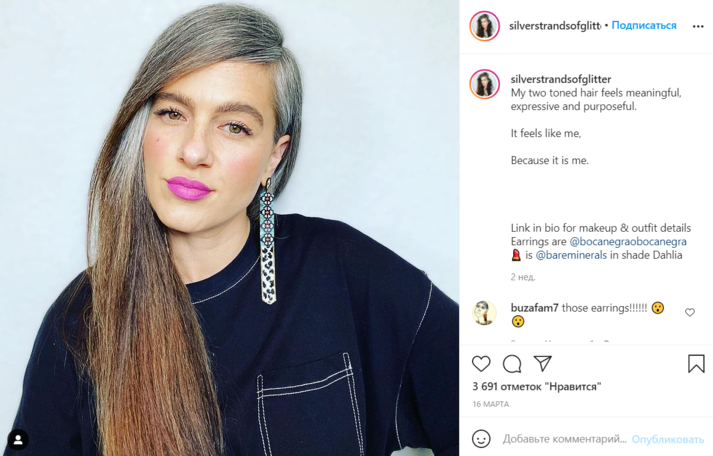 Жительница Калифорнии отказалась от окрашивания седых волос и прославилась в социальных сетях. Соответствующая история появилась на Daily Mail.