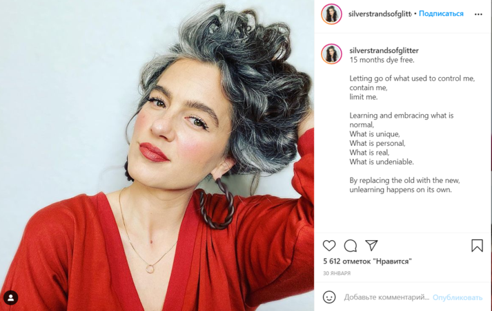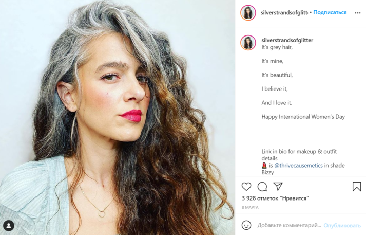 По словам героини материала, она перестала краситься, вдохновившись женщинами, которые показывают в своих Instagram-аккаунтах процесс своего старения. «Я поняла, что существует огромное количество людей, которые не боятся показать свою настоящую внешность. Я решила, что тоже хочу документировать свое взросление и стать частью этого сообщества, разделяя с другими как радостные, так и печальные моменты жизни», — подчеркнула она.