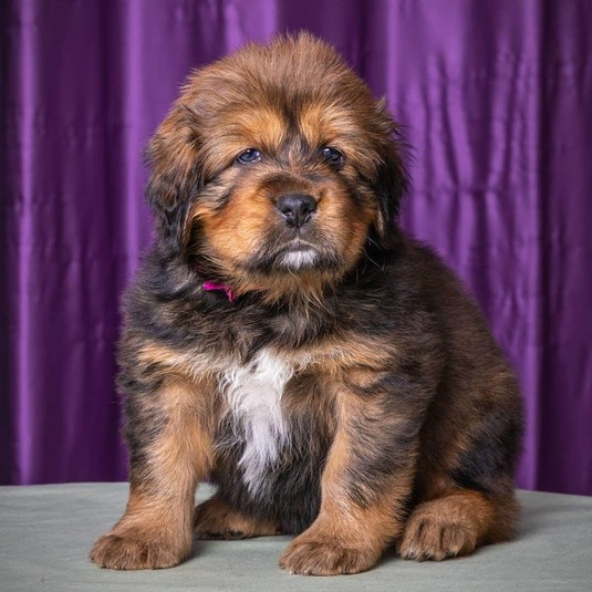 Тибетские мастифы впечатляют своими внушительными размерами и роскошной густой шевелюрой. Они грозные охранники, но с хозяином ведут себя очень нежно и добродушно. Владельцу этой чудесной породы надо приготовиться к тому, что питомец вырастет размером с маленькую лошадку и потребует отдельную комнату или огромную комфортабельную конуру.
