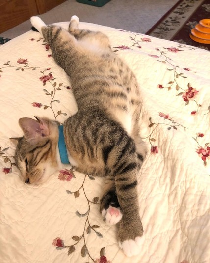 Американка решила забрать необычного котенка домой и назвала его Аслан в честь персонажа из серии книг «Хроники Нарнии». Котейка оказался очень ласковым и дружелюбным: он любит обнимашки, спит рядом с хозяйкой и хорошо общается со своими хвостатыми братьями — котом Ангелом и собакой Кингстоном, пишет Metro.