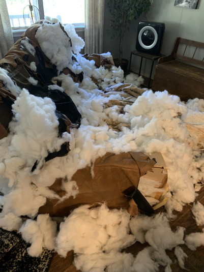 «Этот диван был у нас всего четыре месяца — говорит Вики. — Бо часто спит на диване, это определенно его территория. Ему нравился диван. Я была на работе, и камера для домашних животных предупреждала меня о том, что в доме что-то происходит, но я думала, что Бо просто ведет себя как обычно. Я даже не могла представить, что в этом время он разрушает мой диван».