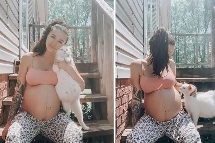 Беременная девушка случайно нашла кошку, которая вот-вот родит. Трогательная фотосессия