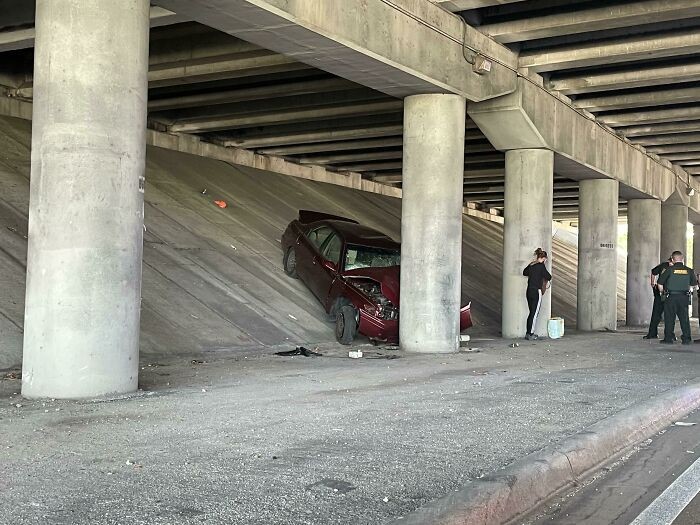 «На грани катастрофы, или Почему не стоит игнорировать ограничительные знаки», «Вот что бывает, когда покупаешь права», «Просто без комментариев», «Какой-то чувак думал, что он самый умный и проехал через барьеры на строящийся мост»», «Они умудрились устроить аварию на абсолютно пустой трассе», - комментируют фото пользователи сети.