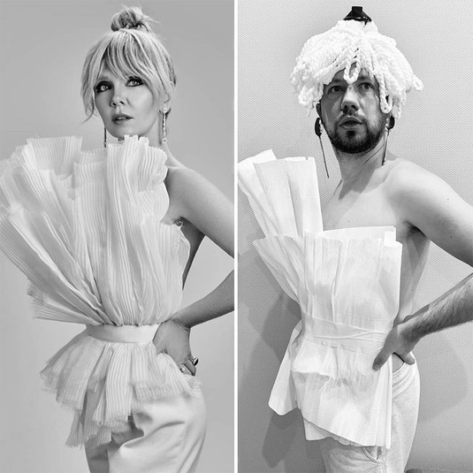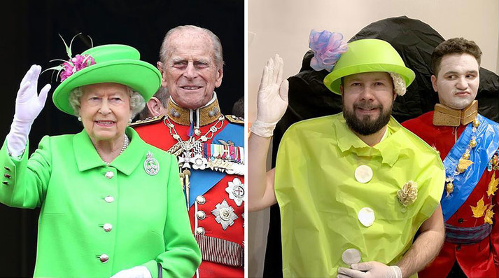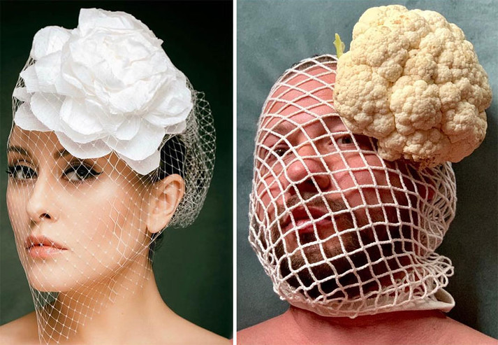 Мужчина воспроизвел странные фото знаменитостей, используя подручные вещи. Например, заменил золотые украшения бубликами, одежду сделал с настоящих листьев, фольги или бумаги.