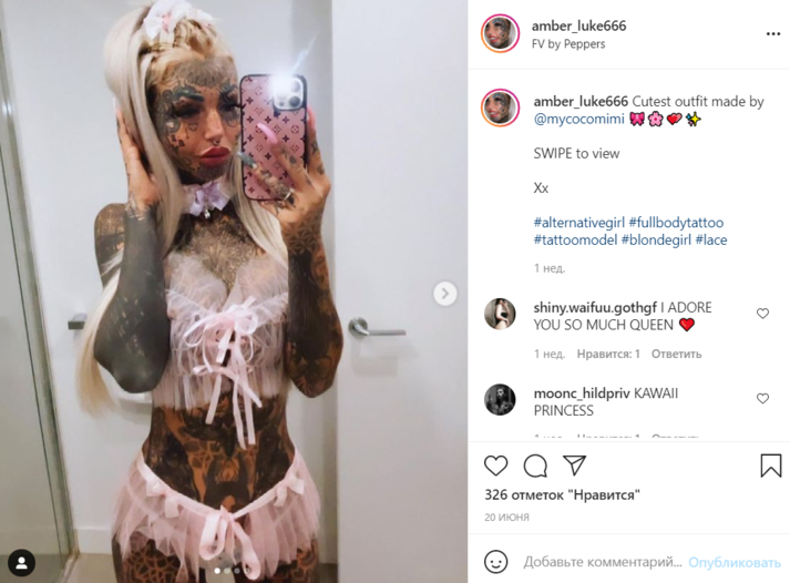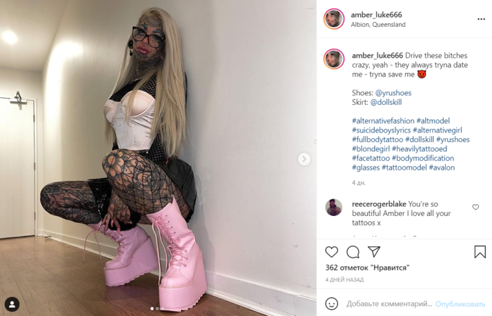 26-летняя модель Эмбер Люк (Amber Luke) объяснила, что всю жизнь ненавидела свою внешность. В 14 лет ей диагностировали депрессию. «Я будто ощущала, что нахожусь не в своей шкуре. В течение многих лет я жила в теле, которое ненавидела. В один момент я решила перестать ненавидеть себя и, наконец, полюбить свою внешность», — поделилась она.
