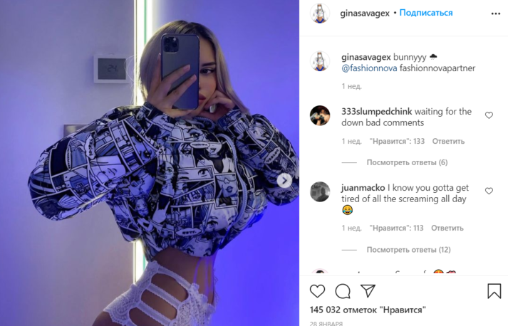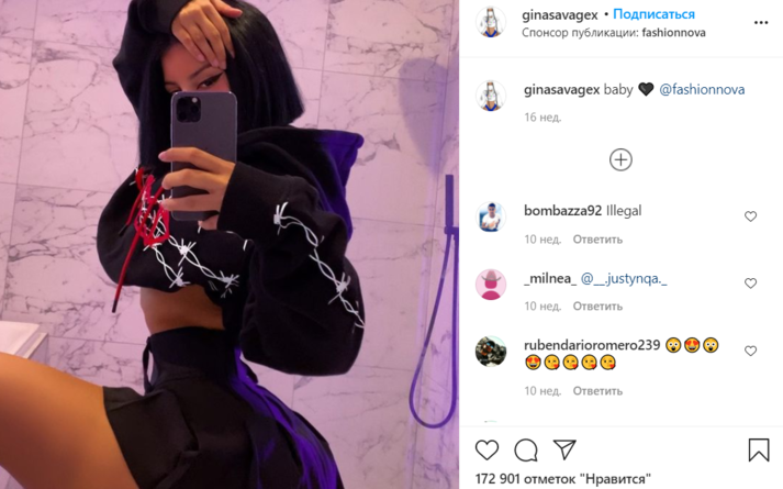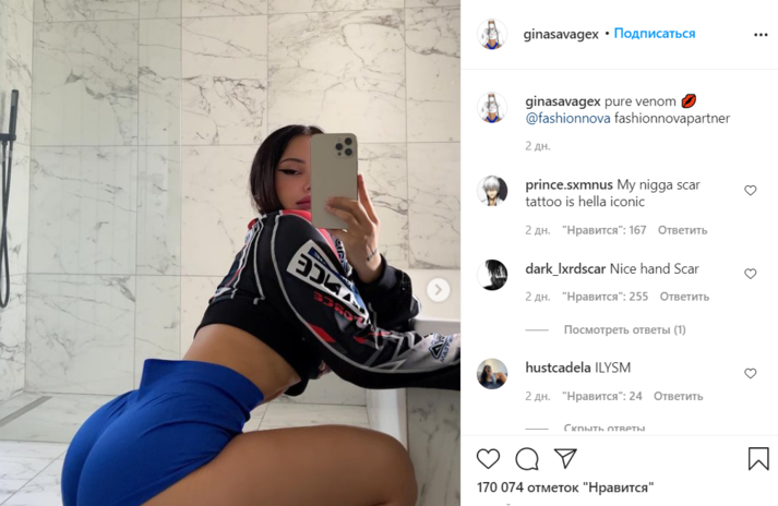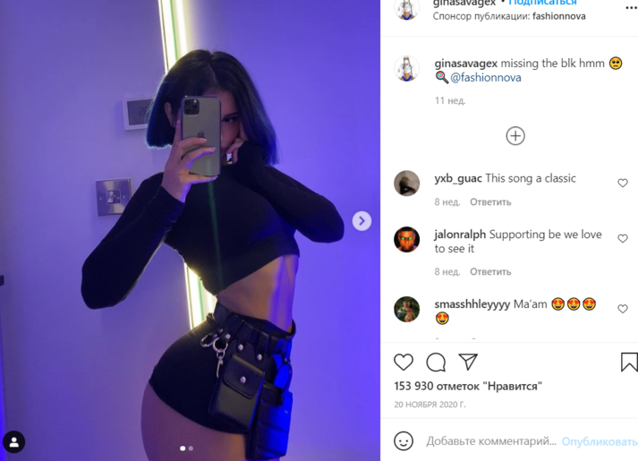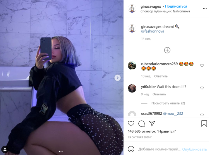 Подписчики Джины иногда начинают сомневаться в ее земном происхождении, но загадка ее осиной талии легко раскрывается. Девушка постоянно занимается в спортзале, качая ягодицы, а для фото она выбирает удачную позу, приближая их к камере — так они кажутся больше. Затем модель набирает в грудь побольше воздуха и втягивает живот — как для вакуумного массажа.