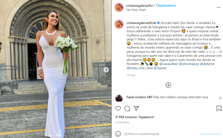 Бразильянка вышла замуж за саму себя, но вскоре развелась (фото)