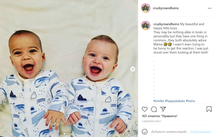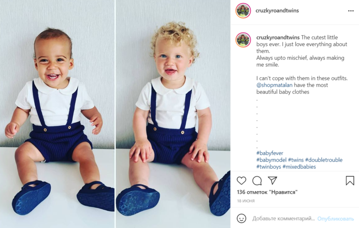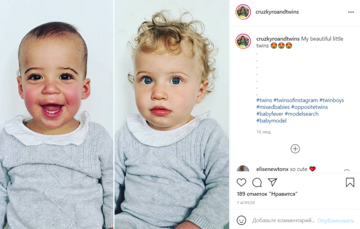 «Нас часто останавливают прямо во время прогулки, чтобы расспросить о близнецах. Когда мы с Кадо узнали, что у нас будут близнецы, мы не особо задумывались о том, как они будут выглядеть. Но предполагали, что оба будут смуглыми. Я не ожидала, что они родятся полной противоположностью друг другу», — рассказала британка.