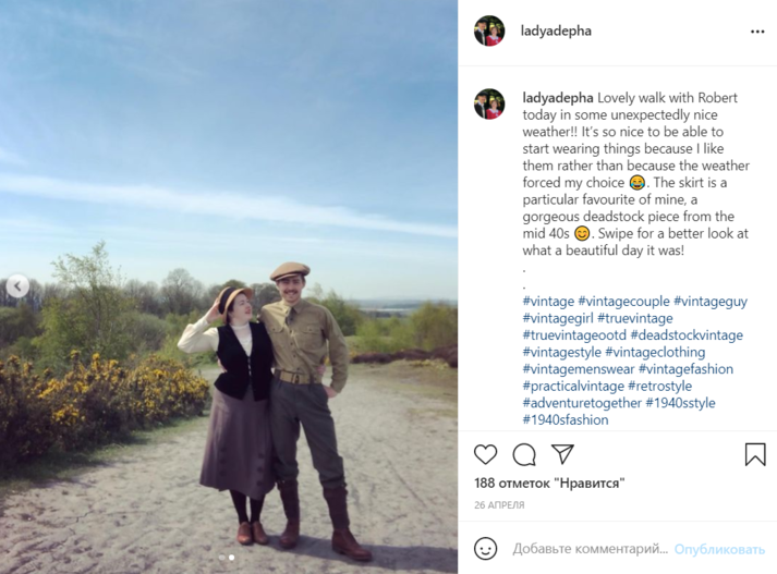 Молодые люди увлеклись эпохой 1930-х годов благодаря своим бабушкам и дедушкам: в детстве они смотрели много старых фильмов, слушали музыку и читали книги тех лет. Рут и Роберт считают, что их необычный образ жизни приносит пользу их отношениям, позволяя наслаждаться настоящим моментом, вместо того, чтобы целый день залипать в телефоне или смотреть сериалы на Netflix, пишет New York Post.