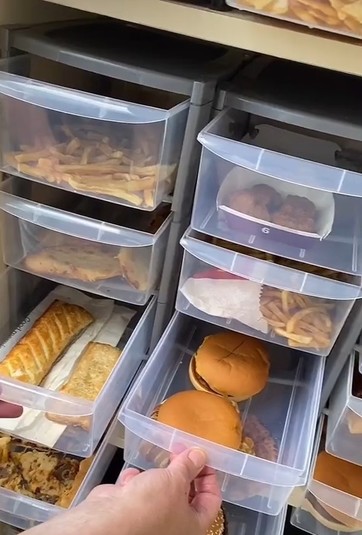 Пользовательница TikTok из Великобритании по имени Элиф Кандемир поделилась роликом, в котором показала заполненную фастфудом кладовую своей матери-диетолога. В нескольких пластиковых ящиках для хранения лежат гамбургеры, картофель фри, кусочки пиццы, жареный цыпленок в панировке, пончики, мармелад и т. д.
