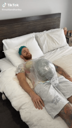 С таким утяжелением парень попробовал встать с кровати, но это оказалось ой как непросто. Вместо бодрого подъема у будущего отца получилось невнятное пыхтение и переваливание с боку на бок. Еще Мейтленд попробовал надеть кроссовки с таким животом. Если с обувью парень справился, то вылезти из ванной без посторонней помощи он так и не смог