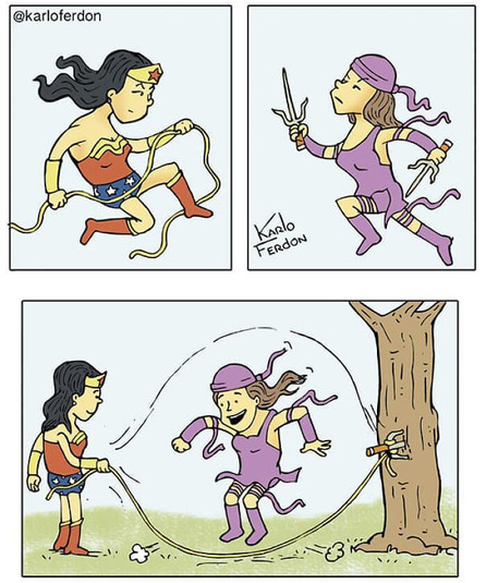 Художник-карикатурист из Чили по имени Карло Фердона на протяжении нескольких лет создает очень необычные и забавные комиксы, наглядно показывающие, чем бы могли в свободное время заниматься Супермен, Человек-паук и другие супергерои.
