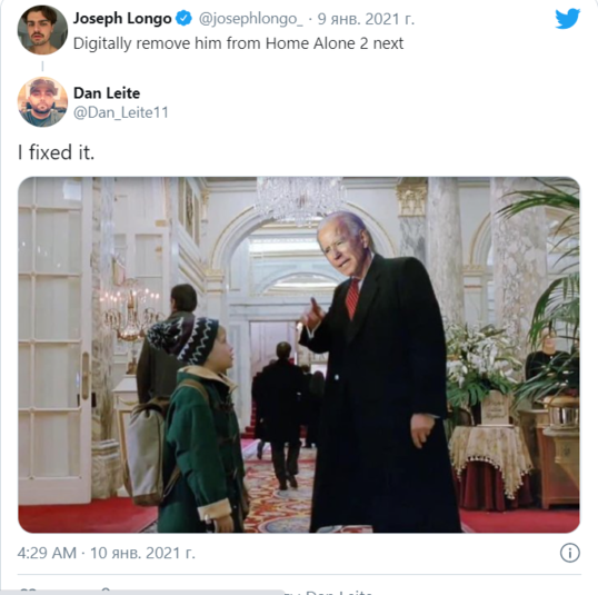 9 января пользователь Twitter убрал действующего президента США Дональда Трампа из сцены фильма «Один дома — 2».