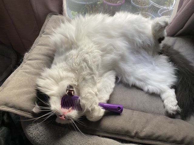 «Кажется, Пеннивайз думает, что этот носок принадлежит ему», «Чупа-чупс из кошачьей мяты — его любимое лакомство», «Корделия не любит, когда я работаю», «Чаще всего котики совсем не жалуют щеточки и расчески, поэтому все, что приближается к их шерстке, рискует быть непременно укушенным!», - комментируют фото пользователи сети.