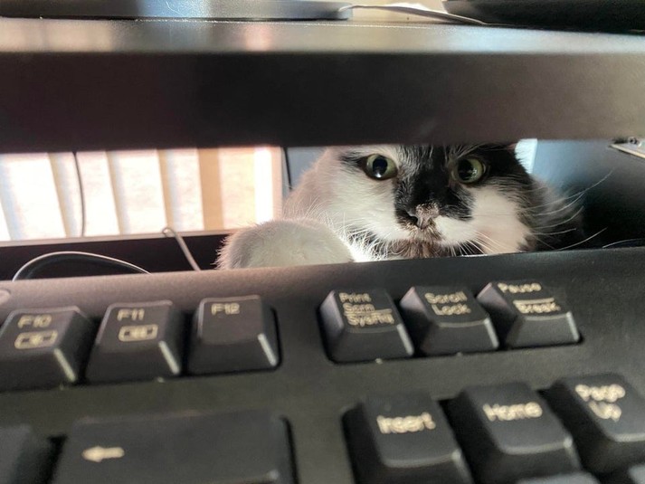 Ведь как объяснить кошке, что такое работа и личное пространство? Правильно, никак! Поэтому-то и случаются такие казусы, как и на фотографиях ниже.