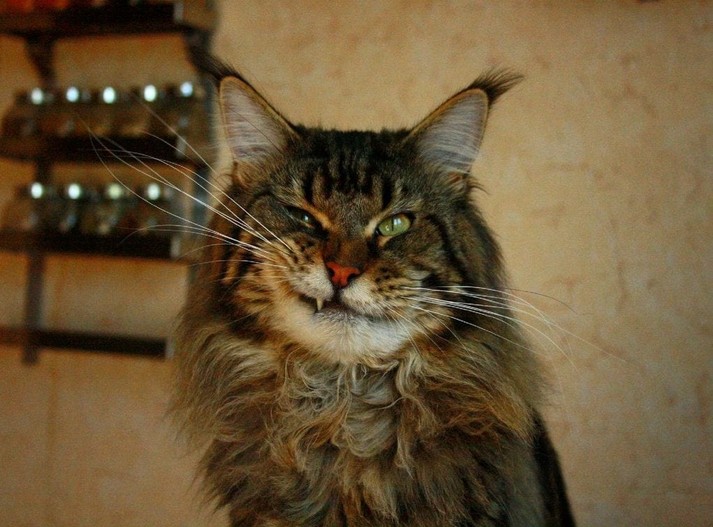 Какие прилагательные возникают в нашей голове, когда речь идет о мейн-кунах? Величественный, шикарный, огромный, пушистый, красивунный, внушительный, прекрасный, лучший — приблизительно такие. А как насчет «нелепый», «забавный» или «бестолковый»? Да как у нас только руки не отвалились такое написать про эту величественную, шикарную и так далее породу?!