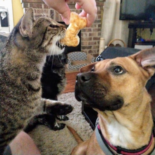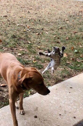 Есть такой стереотип, что между этими животными всегда вражда, и некоторые представители этот стереотип подтверждают
