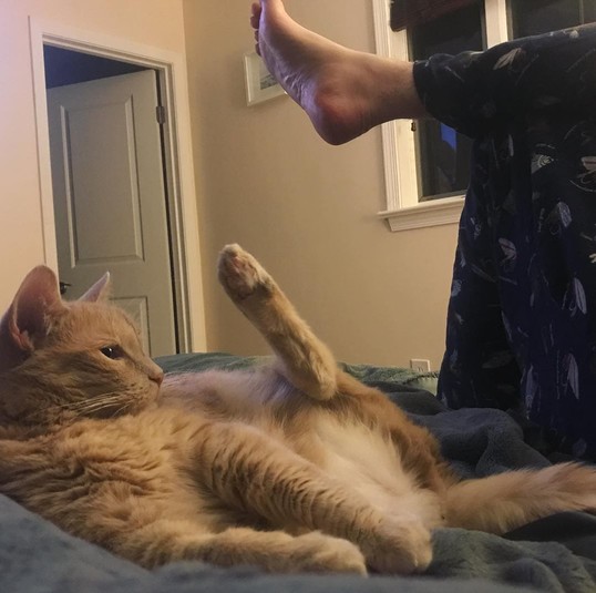 «Случайные фото всегда самые удачные!», «Мы с котом любим полежать», «Близнецы? Нет, просто лучшие друзья!», «Да, лежать так и правда очень удобно», «Кажется, они слишком много времени проводят вместе», «Хотите узнать, кто мой главный соавтор?», – комментируют фото пользователи сети.