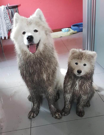 «От них так и веет харизмой!», «Маленькая копия скоро вырастет», «Послал малого разобраться, почему не пускают внутрь», «Папа обучал синишку баловаться в грязи», - комментируют фото пользователи сети.