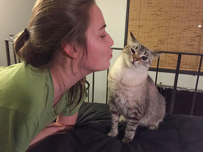 «Поставь меня на место, человек», «Нет, человек, не нужна мне твоя любовь», «Что непонятного в "Я ненавижу селфи», «Прекращай меня обнимать. Я пытаюсь позвать на помощь!», «Я тебя, конечно, люблю, но сегодня без поцелуев», - комментируют фото пользователи сети.