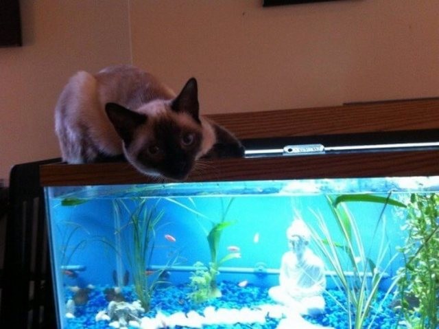 «Это ты, хозяин? А я тебе гоголь-моголь готовлю», «Иду мимо, смотрю дверь открытая», «Я рыбок не трогаю, я только медитирую», «Не ругай, дорогой, стресс я снимал», «Ты о чем, хозяин, не пойму никак?», «Ну и чего смотрим, чего ржем? Снимай, давай», - комментируют фото пользователи сети.