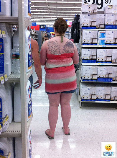 Любопытными иллюстрациями к набору стереотипов об американском образе жизни могут стать фотографии из знаменитой сети гипермаркетов Walmart. Здесь можно встретить покупателей, которые как будто забыли, что они вышли из дома и пришли за покупками в бигудях, без штанов и в таких экстравагантных костюмах, что с трудом верится в реальность происходящего. Портал Peopleofwalmart собирает фотографии очень странно, безумно, неприлично и нелепо одетых одетых людей, которых можно встретить в американских супермаркетах.
