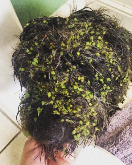 «Она пробежалась по высокой траве. Понадобилась ванна и 2 часа, чтобы это вычесать», «Когда играл с ручкой и проиграл», «О нет!», «Птица оставила подарок точно на голове», «Стоило отлучиться из дома, как собака поменяла цвет», «Друг оставил пса дома, а когда вернулся, он был таким. Видимо, он нашёл пачку угля и поигрался с ним», - комментируют пользователи сети.