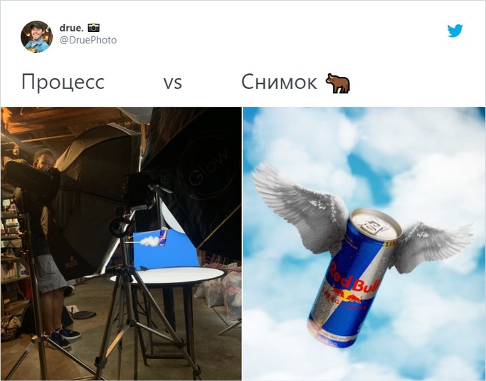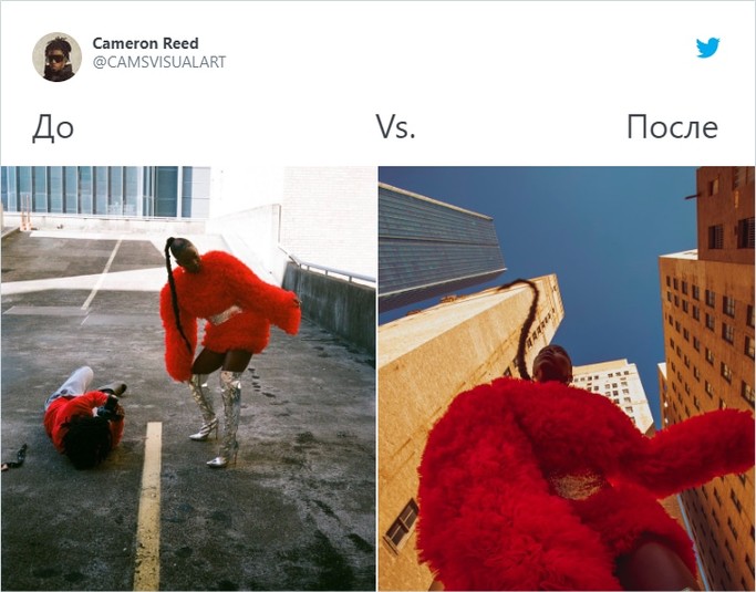 Фотографы устроили флешмоб в Твиттере и показали, как выглядел процесс создания снимка и что получилось в итоге. Ловкость рук и никакого мошенства!