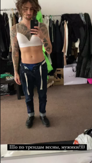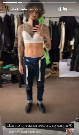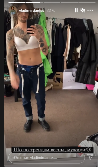 В ролике Дантес позирует в расстегнутых джинсах и в женском белом бюстгальтере на обнаженном торсе.