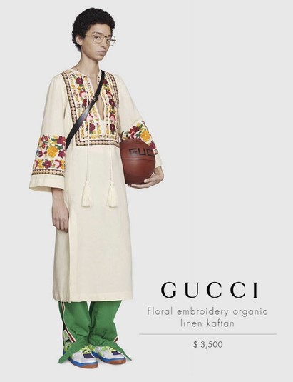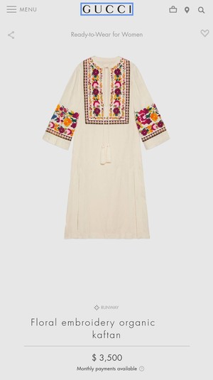 Речь идет о белом льняном платье с цветочными узорами из летней коллекции, выполненном в стиле традиционной южноазиатской курты (свободная рубашка, доходящая до колен, которую носят как мужчины, так и женщины). Стоимость вещи на сайте марки составляет $3500 долларов.