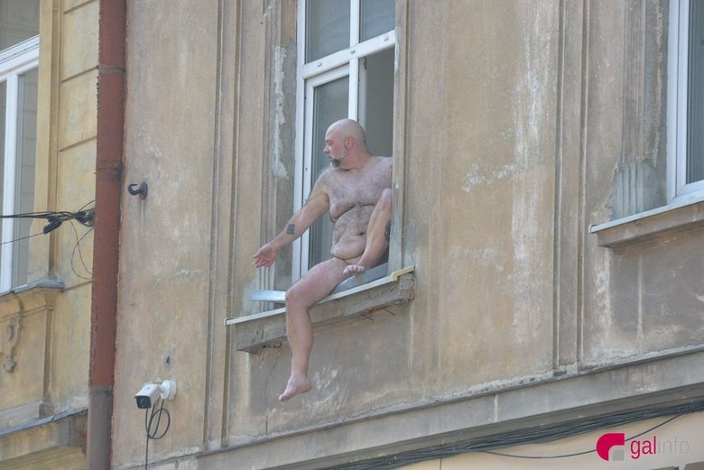 Голий перформанс у центрі Львова: іноземець виліз на вікно та налякав туристів (фото)