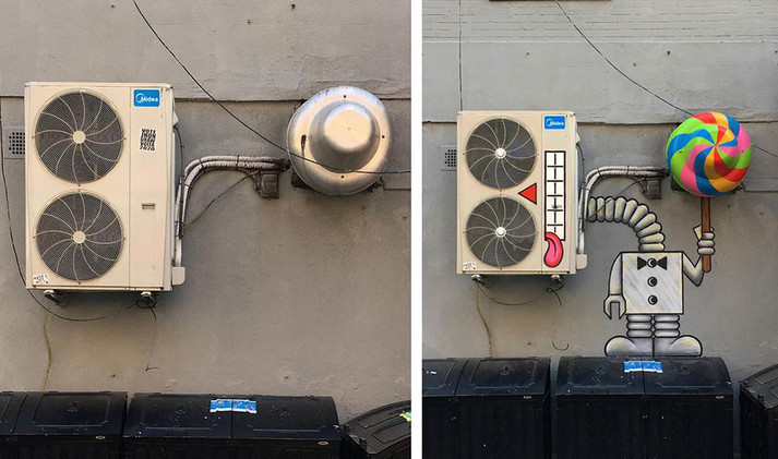 Полиция с прохладцей ищет некоего Тома Боба, чтобы предъявить ему обвинение… наверное, назовут это «эстетическим вандализмом». Потому что ничего художник не ломает и не портит, а лишь разбавляет серые виды улиц новыми красочными деталями.