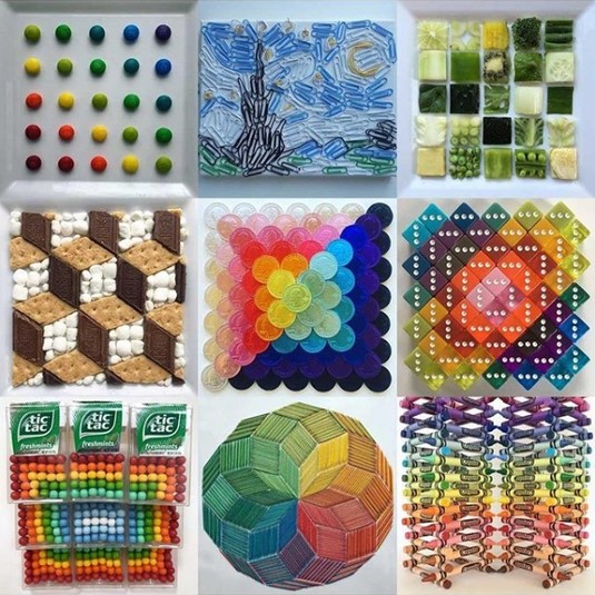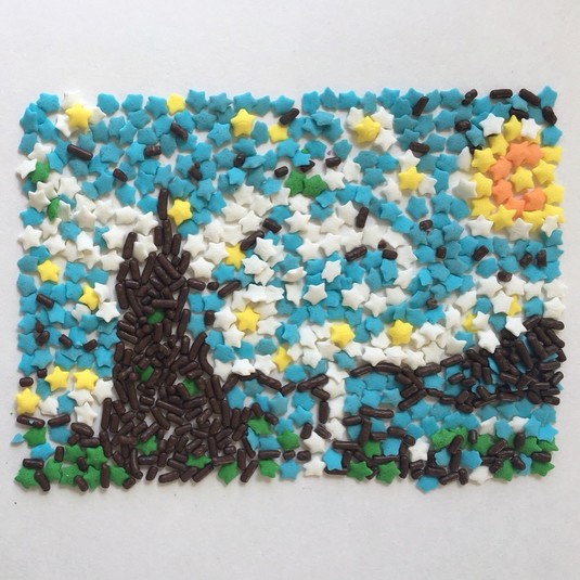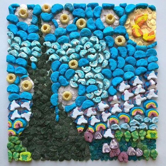 В частности, на его странице в Instagram можно увидеть несколько вариантов «Звездной ночи» Винсента ван Гога, «Мону Лизу» Леонардо да Винчи из шоколада, «Поцелуй» Густава Климта из различных сладостей. А версия картины «Крик» Эдварда Мунка создана, к примеру, из мороженого.
