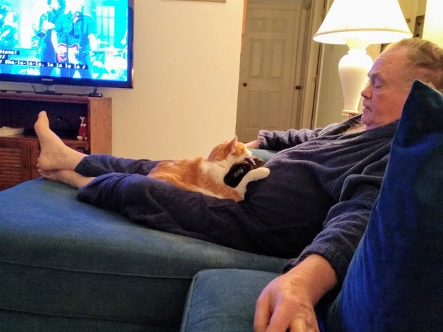 «Мой отец, который не хотел заводить кота, в своей любимой футболке «лучший кошачий папа на свете», «Мой отец, который «терпит» нашу кошку», «Он говорил, что в его доме ни за что не будет никаких собак», «Мой парень не хотел заводить собаку, а теперь балует её больше, чем я», ─ комментируют фото пользователи сети.