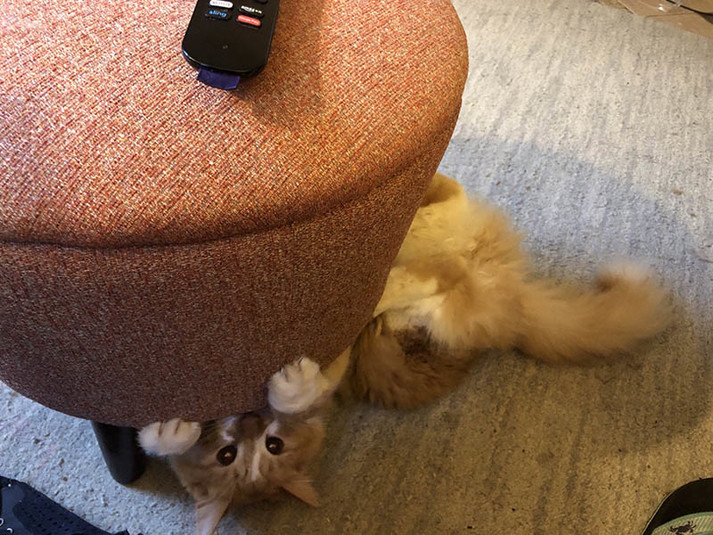 «Буквально сразу же принялся уничтожать новый пуфик», «Что ты там такое интересное смотришь?», «Гугл сделал панорамное фото кота, который ворует брюки моего мужа», «Главное, что их все устраивает и им весело», «Это сделала даже не кошка и не собака, а черепаха. Вон она там сзади прячется», - комментируют фото пользователи сети.